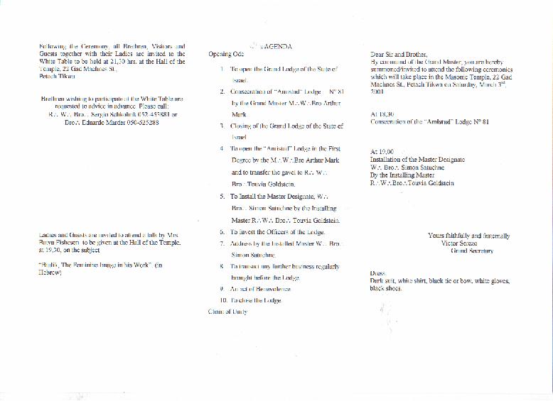 This is the WebSite of "Amistad 81" Lodge in Petach Tikwa,
