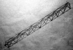 | Using the minimum amount of material to build a structure with a clear span of 30" capable of supporting a 1 kg.(min.) concentrated load with a maximum deflection of 1/4". The challenge is to build the strongest and lightest (most efficient) structure using individual components that are too short to do the job. Parts are connected with glue with a minimal overlap,but cannot be laminated, which would effectively produce a larger crossection. All Basswood components were used with a maximum lengths of 12" pieces. They were fastened together using a mortise and tenon connection. |