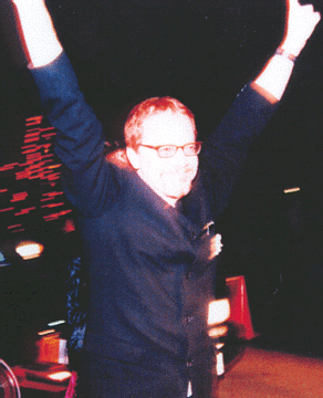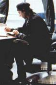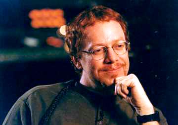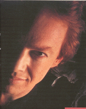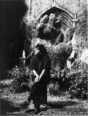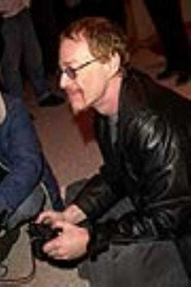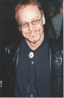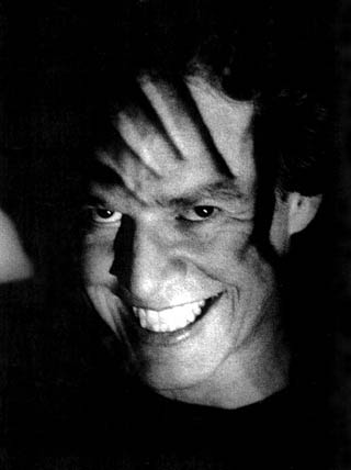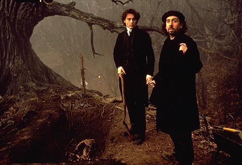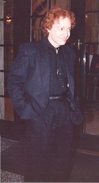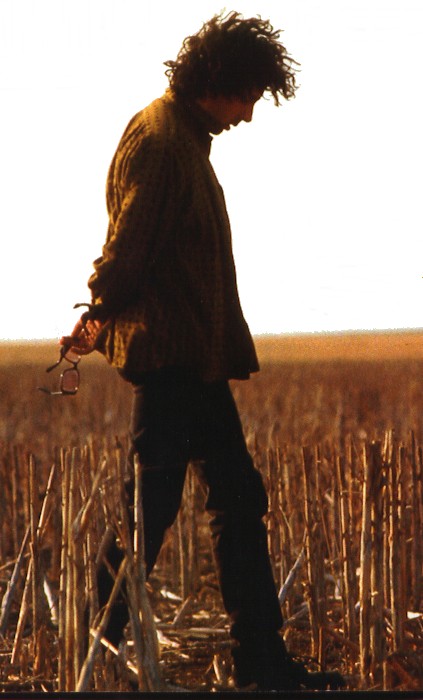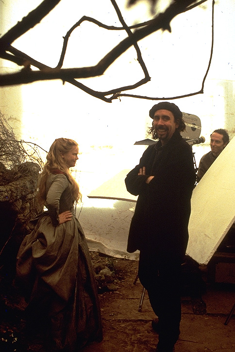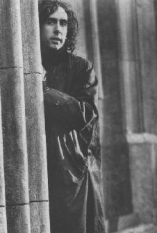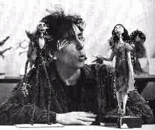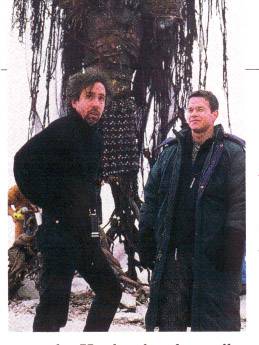Burton: rumpled hair, black clothing, and not a smile in sight.