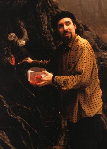 sort of gritty picture of Tim with his favorite toy. (Perverts.)