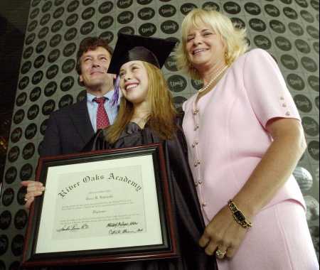 Olympic gold medal figure skater Tara Lipinski, center, poses with her parents, Jack, left, and Pat, after a graduation ceremony Thursday, May 18, 2000 in Houston. Lipinski received her high school diploma from River Oaks Academy. (AP Photo/David J. Phillip)
