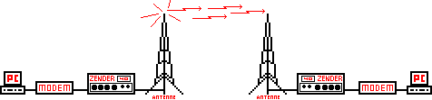 Wat is Packet Radio Communicatie? Packet communicatie is een vorm van communicatie door de lucht. Er wordt door middel van een z.g. packet modem (Baycom of TNC), een zendontvanger (het z.g. bakkie), en uiteraard een computer. Om het wat duidelijker te maken hier een kleine grafische uitleg: