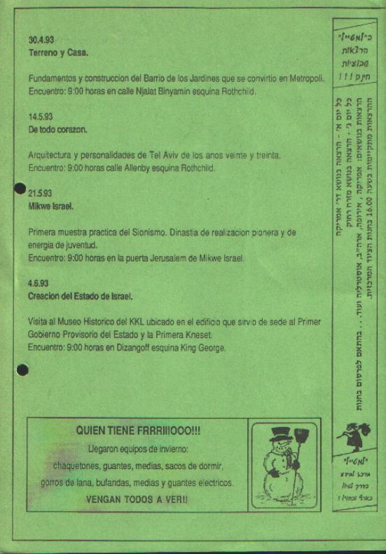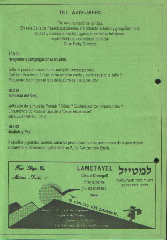 En el marco de la Semana Internacional del Nino en Israel, auspicada por la esposa del Presidente de Israel, el Presidente del Instituto Israeli Chileno de Cultura dicto una conferencia sobre Chile con diapositivas, a 500 alumnos del coilegio ORT Habonim de Bat Yam el 10 de junio de 1993.