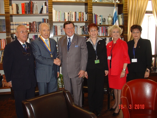 In the frame of the program of the 50th District Anual Convention, visiting Shimon Peres, President of the State of Israel with Official Speaker, International President Elect Sid L. Scruggs lll and his wife Judy.