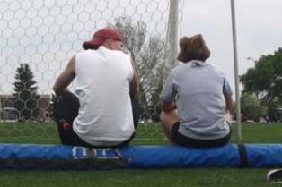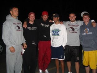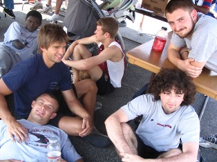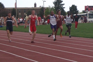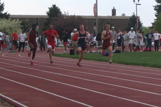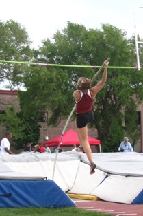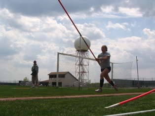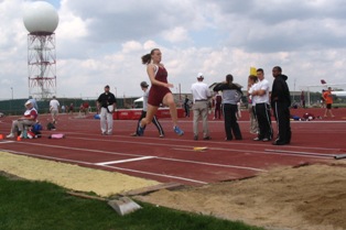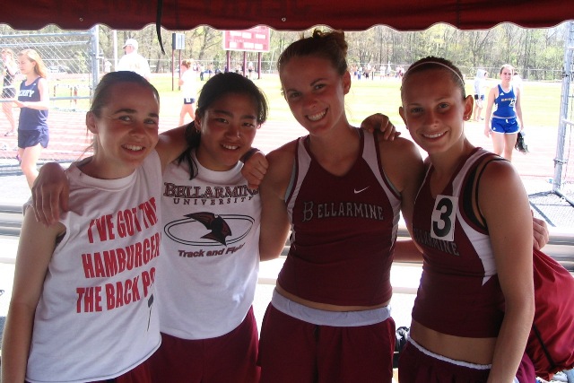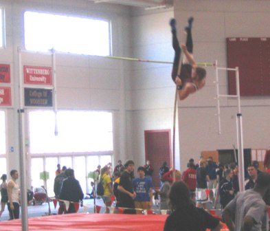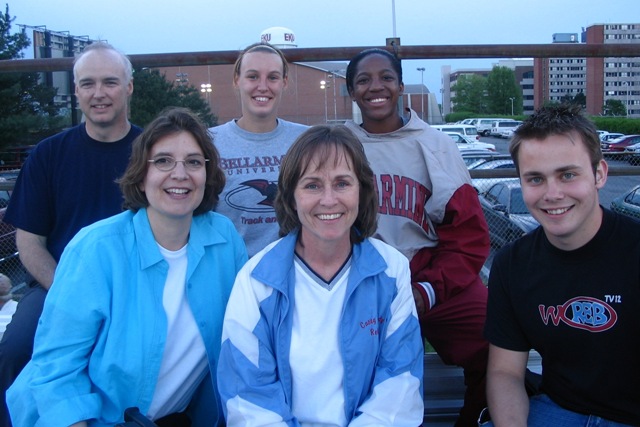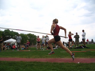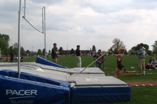 The 2005 indoor season just ended for us with the GLVC Conference Meet at Wabash College. Meet results are on the official website. Thirty-five personal bests were posted by B.U. athletes with different school records being broken. Laura Eppstein, Emma Gailey, and Meghan Crowe all recieved All-Conference honors. Laura took 2nd place in the High Jump with a height of 5-5.75. Emma took 2nd in the pole vault with a height of 9-8. Meghan won the 5000 with a time of 18:02.95, setting a new fieldhouse record at Wabash by over 68 seconds! Laura will compete at the NCAA DII National Championships held in Boston on March 11-12 after she qualified earlier in the season with a jump of 5-8. She is the first athlete from Bellarmine to qualify to compete in the National Championships! Other news from the meet: The women's 4x200 (Maisah Edwards, Rachel Walz, Michelle Esterle, and Mikenzie Lewis) team broke their own school record by running a 1:52.75 to take 6th. The men's 4x200 (Kyle Brockman, Steve Hanson, Charles Shepherd, and Mike Mesey) team also broke the school record with a time of 1:33.21 to take 3rd in the meet. Kerri Wilkinson set a new personal best in the pole vault with a jump of 9-2.25 for a 3rd place finish. The women's 4x400 team (Katie Hickey, Rachel Walz, Rita Dixon, and Crystal Duffala) set a new school record with a time of 4:17.97 for a 6th place finish. Mike Rafferty set a new personal best in the weight throw by over a whole meter with his throw of 33-11.25. Jocelyn Cook also set a new personal best in the weight throw with a toss of 33-01.25. Earlier in the season the women's DMR team (Crystal Duffala, Katie Hickey, Rita Dixon, and Meghan Crowe) obliterated the school record with a time of 12:36.11 and provisionally qualified for the National Championships. However, their provisional time did not get them accepted to the Championships. The highlight for myself was finally jumping a new personal record in the pole vault. Despite a tweaked hamstring, I managed to clear 12-11.5 for a 7th place finish at the GLVC Meet. It was the first time I've PRed in the vault since high school, so now the monkey's off my back. But I'm still looking for better. The school record isn't but mere inches away and 14 feet is looking great! Below are a few picutres of the 2005 season.