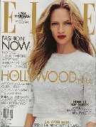 We're in East Hampton on a sunny Friday afternoon. Uma Thurman is standing very still on a low platform in a slinky white evening dress. Although the sun shines brightly, the atmosphere of this shot is glamorous and eveningish, and the ELLE team has built a white room out of pieces of paper and scaffolding. Uma stands inside this white cube, appearing a bit like an angel perched atop a wedding cake, or a prisoner, depending on how you look at it.