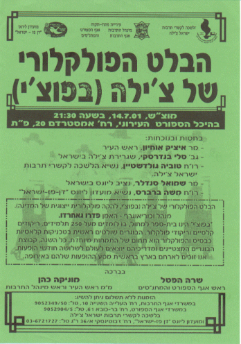 RECONOCIMIENTO PUBLICO DEL "BAFOCHI" AL INSTITUTO ISRAELI CHILENO DE CULTURA ENTREGADO EN LA PRESENTACION DEL ELENCO EN LA CIUDAD DE PETACH TIKWA EL 14.7.2001.