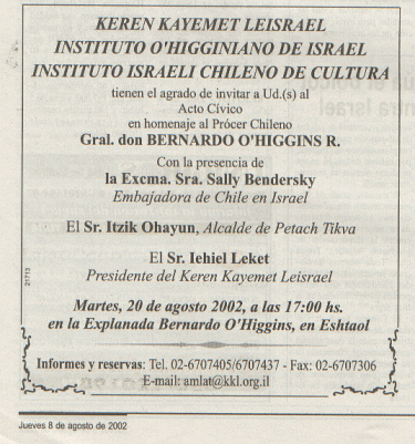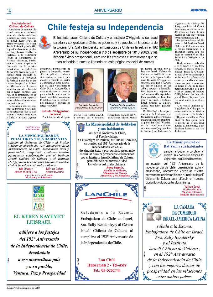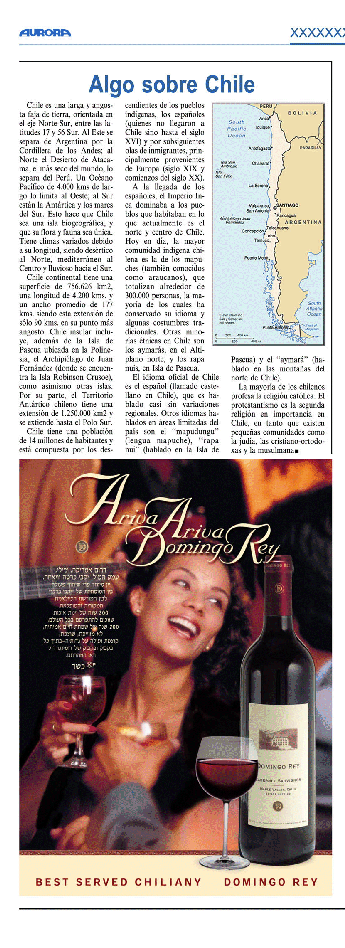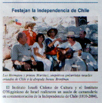 Publicacion en AURORA en relacion a los eventos en Israel para conmemorar el Aniversario de la Independecnia de Chile y el 20 Aniversario del Instituto Israeli Chileno de Cultura.