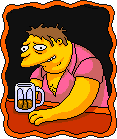Barney Gumble has been Homer's best friend since high school. He is never sober. He likes to drink turpentine, varnish, and Flaming Homers. He is the town's laziest slob. He's never had a job in his life. But I think he's pretty funny. He has a spectacular voice and was a lead singer for the Be-Sharps, a barbershop quartet consisting of Homer, Apu, Principal Skinner, and Chief Wiggum. When the band went pro, however, the executives dumped Wiggum for Barney. Apparently, Wiggum was too "Village People" for the public. At any rate, Barney has a pretty good voice for a drunk.
