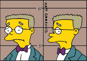 Waylon Smithers is the faithful assistant of Montgomery Burns. Some say that he may be gay and in love with Mr. Burns. He has a naked screensaver of Mr. Burns on his computer, so you have to wonder... The only time he ever showed any disloyalty to Mr. Burns was the whole "Who Shot Mr. Burns" thing. He refused to be a part of Mr. Burns' evil plot to take over Springfield and quit, and got really drunk and thought that he shot Jasper, but it turned out that he only put a bullet into Jasper's prosthetic leg.
