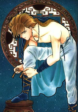 "Yoku" o "Ala" y está en su antebrazo. Tasuki se ha ganado el título de Super Bishonen, si no me creen solo chequen la imagen en blanco y negro^_^ (jarritos para la baba!!!)