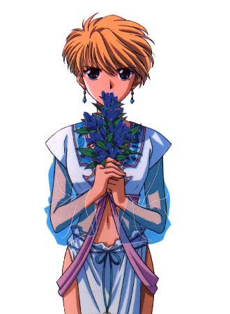 Su seiyuu es Touma Yumi. Otros de sus papeles son: Tama-neko en Fushigi Yuugi (miau^_^), Ninomiya Hinako en Ranma 1/2, Pequeño Ferio(Paris) en Magic Knight Rayearth, Ann/Kisenian flower en Sailor MoonR/movie, Pequeño Hyouga en Saint Seiya, Shilfiel en Slayers, y la lista continua...