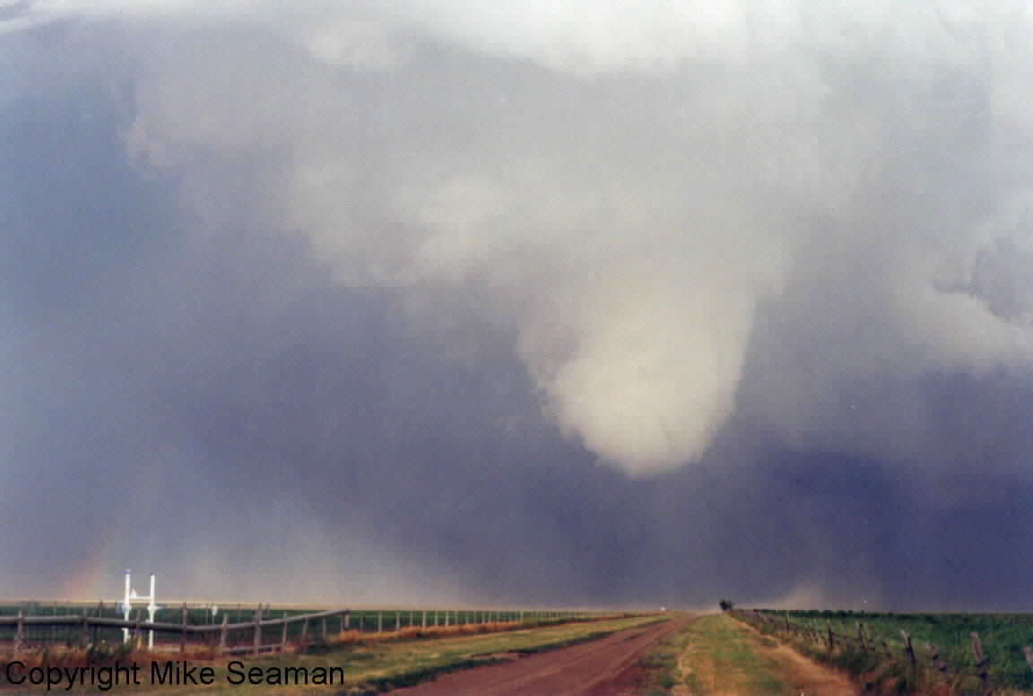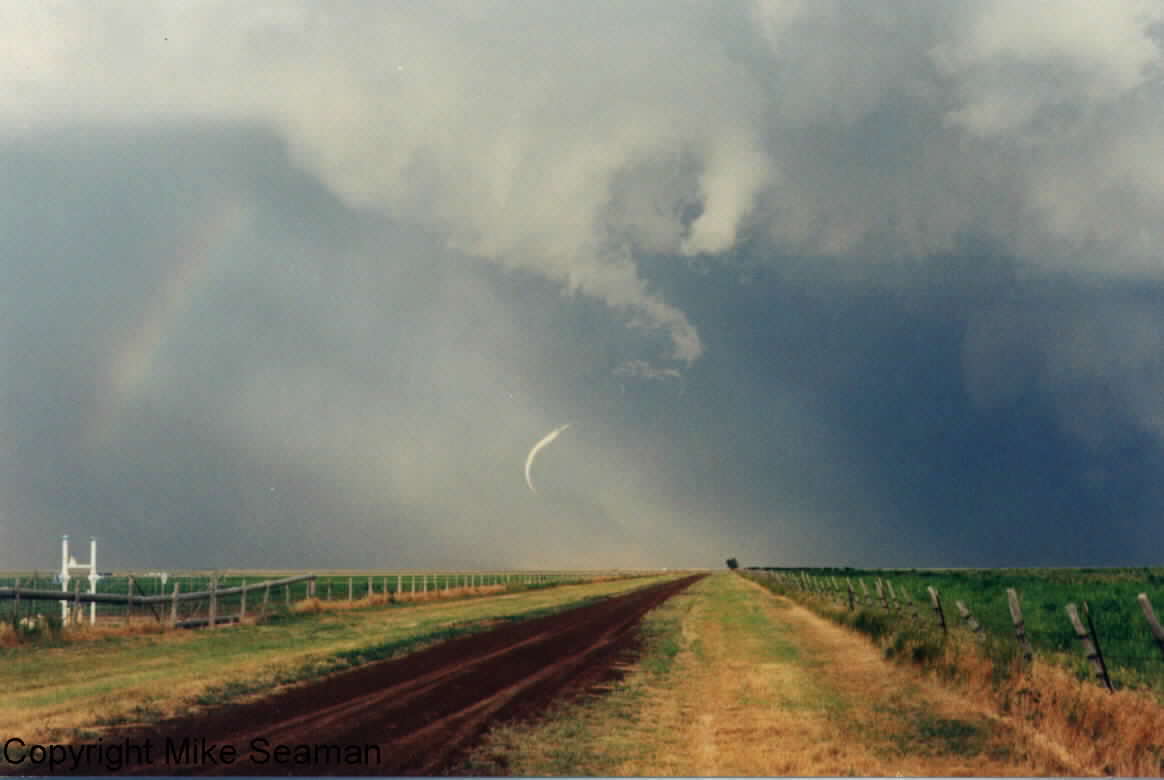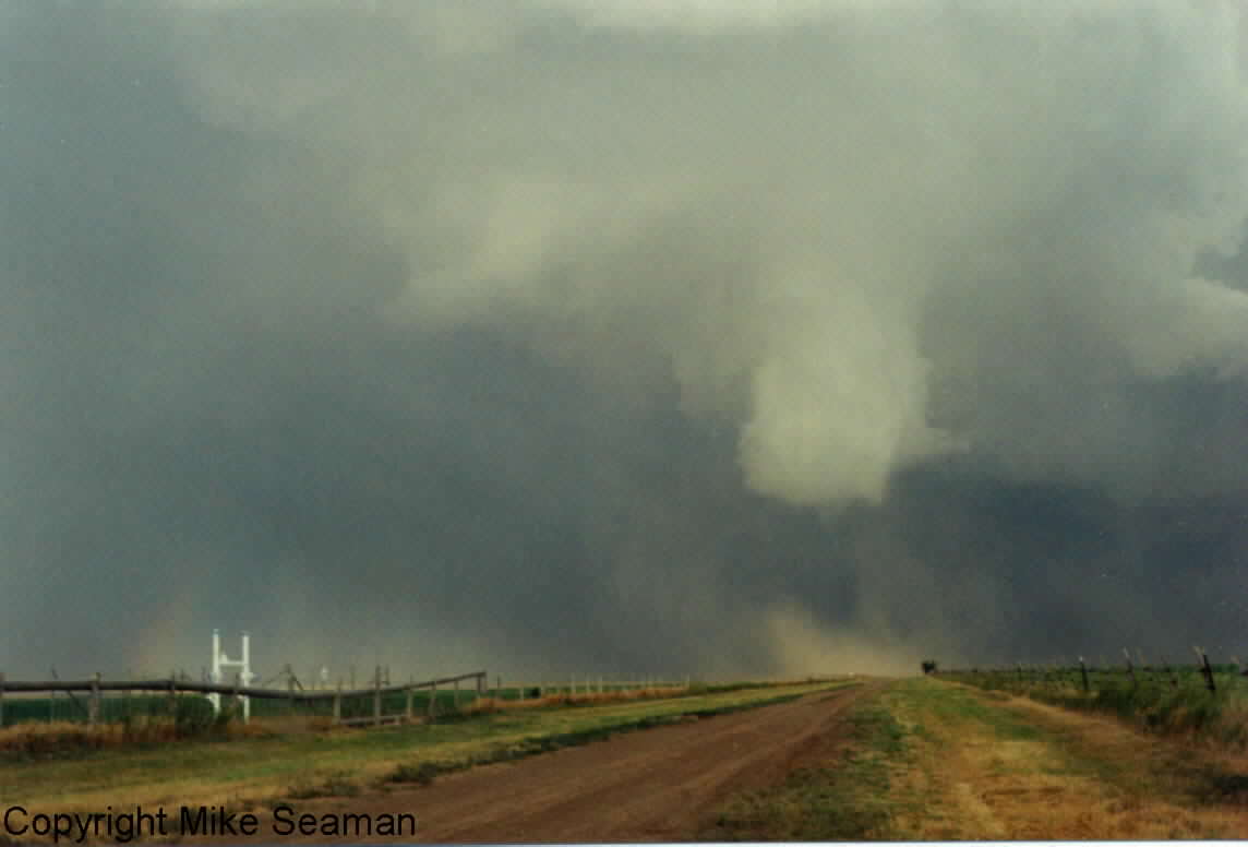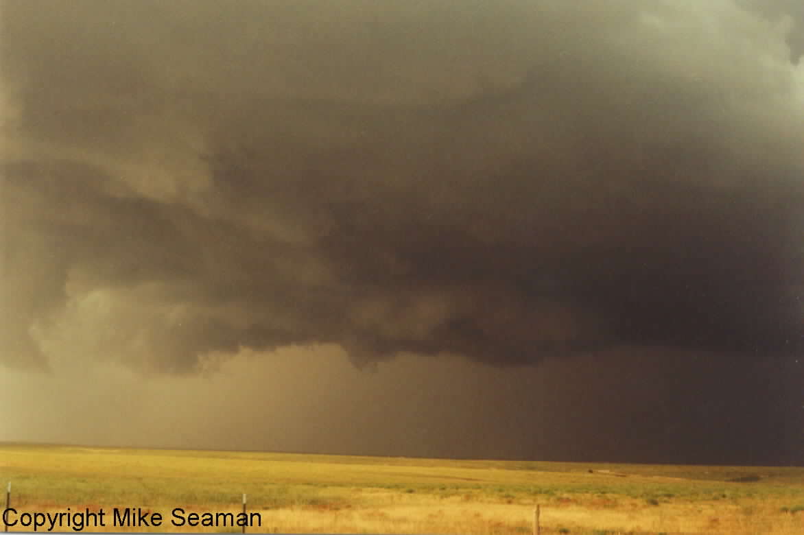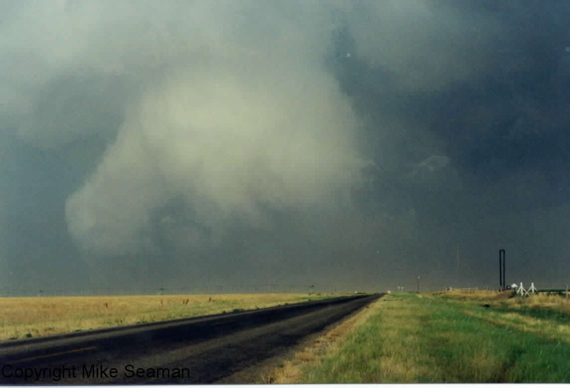 After some disappointing chasing all over the central and southern plains, we decided that we would give the Texas Panhandle a try. There was moderate risk out with the outlook mentioning a "few tornadoes possible." We actually had to go to a lecture that morning where Josh Wurman showed us some of the latest findings from the Doppler on Wheels chasing. We looked extensively at the May 3 Moore storm and saw some really neat detailed Doppler images of the tornado. So that got us all in the mood to chase. Same chase partners as all spring. And once the talk was over headed for northwest Oklahoma. We intercepted a southeast moving supercell that had developed in far southeast CO as it was moving through the OK panhandle into the TX panhandle. We had to punch through the north side of the storm since we initially overshot it. We were pounded by golfball size hail, but once we got through the hail, it turned out to be the best storm of the spring for us. It was kicking up some dust, but not too much and the structure was just, wow! We were on the storm for nearly an hour before it finally produced. Then we tracked a tornado which was on the ground for likely around 7 or 8 miles and 20 to 30 minutes. At times it is hard to tell if it was on the ground b/c of the dust, but closer look at pictures and video revile that it likely had a continuous path. Then on the way home it rewarded us with just a great lightning show. Well worth the wait. The pics you are about to view were taken by chase partner Mike Seaman while I drove and took video. Here are the pics...