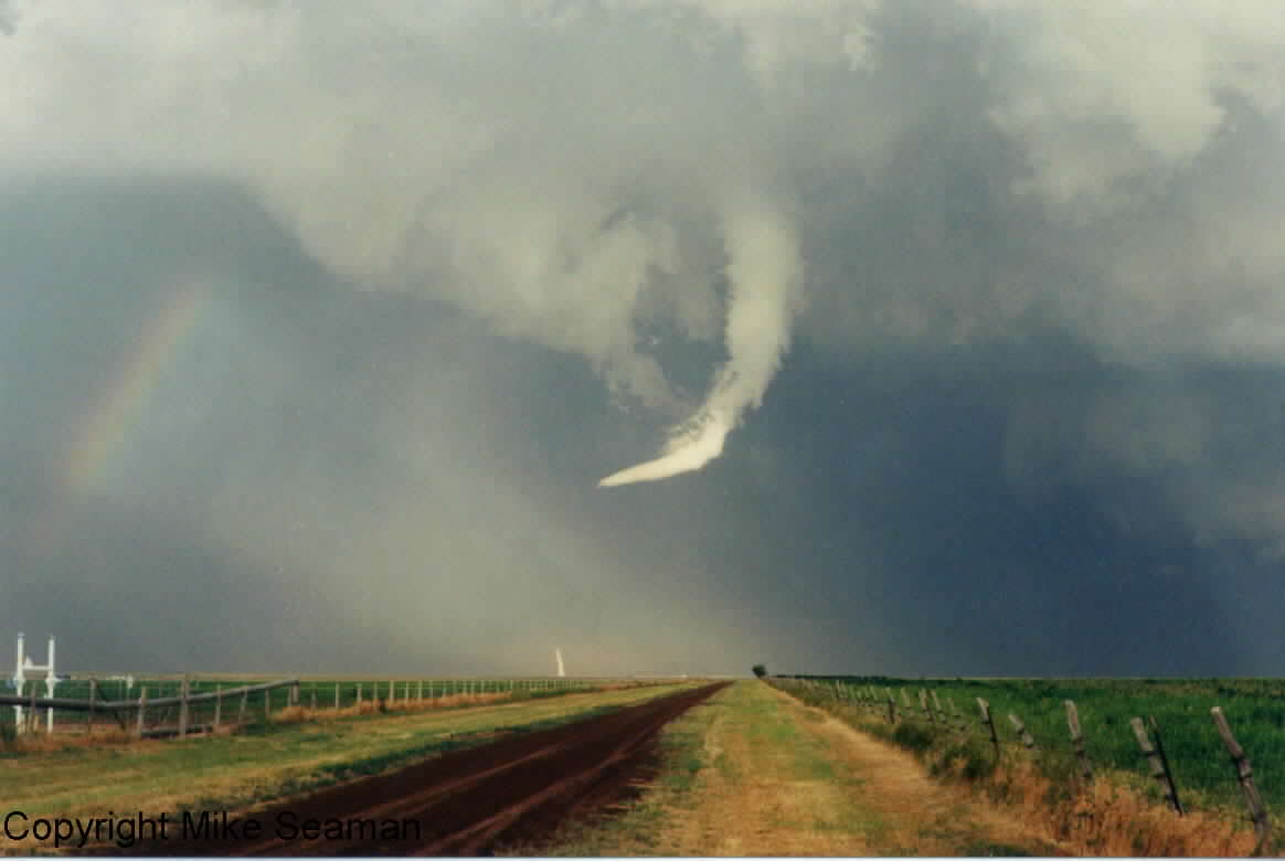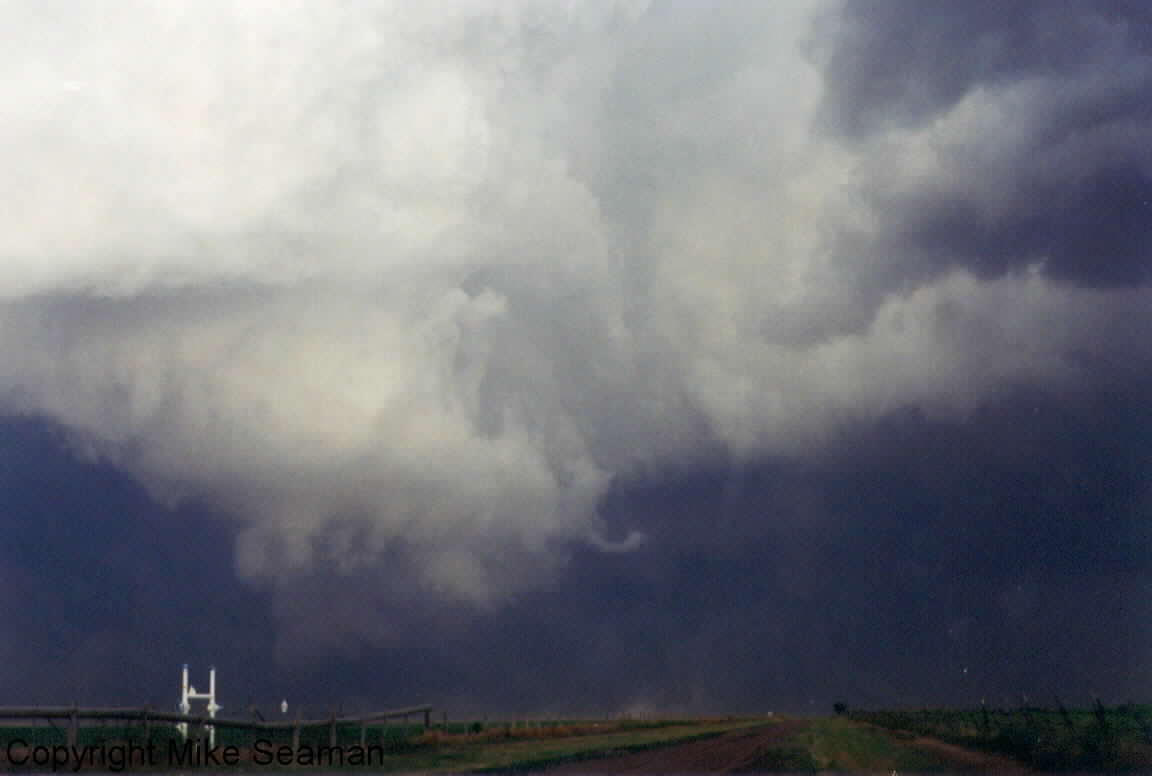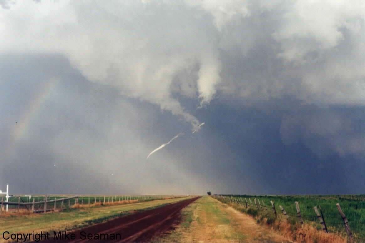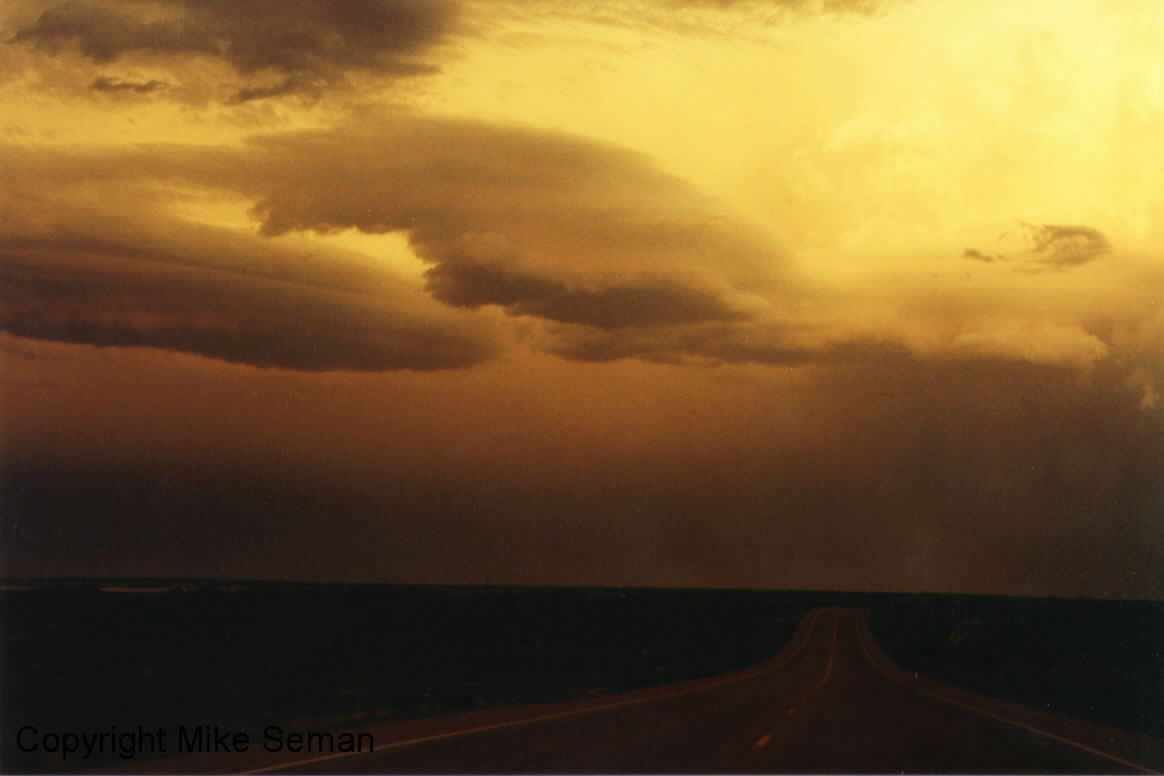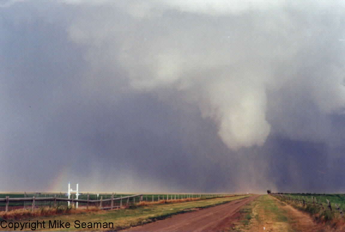 After some disappointing chasing all over the central and southern plains, we decided that we would give the Texas Panhandle a try. There was moderate risk out with the outlook mentioning a "few tornadoes possible." We actually had to go to a lecture that morning where Josh Wurman showed us some of the latest findings from the Doppler on Wheels chasing. We looked extensively at the May 3 Moore storm and saw some really neat detailed Doppler images of the tornado. So that got us all in the mood to chase. Same chase partners as all spring. And once the talk was over headed for northwest Oklahoma. We intercepted a southeast moving supercell that had developed in far southeast CO as it was moving through the OK panhandle into the TX panhandle. We had to punch through the north side of the storm since we initially overshot it. We were pounded by golfball size hail, but once we got through the hail, it turned out to be the best storm of the spring for us. It was kicking up some dust, but not too much and the structure was just, wow! We were on the storm for nearly an hour before it finally produced. Then we tracked a tornado which was on the ground for likely around 7 or 8 miles and 20 to 30 minutes. At times it is hard to tell if it was on the ground b/c of the dust, but closer look at pictures and video revile that it likely had a continuous path. Then on the way home it rewarded us with just a great lightning show. Well worth the wait. The pics you are about to view were taken by chase partner Mike Seaman while I drove and took video. Here are the pics...