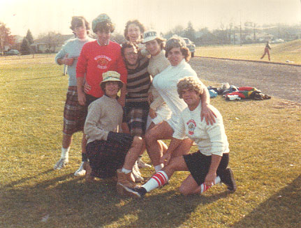 Peter Kumiega, Pam Murray, Sunglass Guy?, Alan Arenius, Kathi Venti, Ronnie Zundell, Dan Caron, Claudia Zinnen, and #9 Bob Snyder. Hey Bob, isn't that the same tongue you used to score 8 goals in one game? Sounds like Al Bundy!