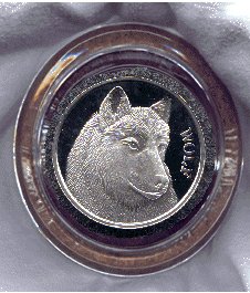 The Wolf one ounce silver round is featured in this beautiful heavy duty glass dome paperweight. This different kind of paperweight would make a practical gift for your dad or mom, aunt or uncle, grandfather or grandmother. The uncirculated coin contains one ounce of pure silver. The thick high quality glass dome is 3 inches in diameter with a thin layer of cork attached to the bottom to prevent scratching.