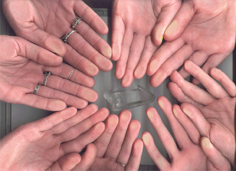 Sarah, Seth, Joanna, and Cynthia sending Reiki around Master Crystal