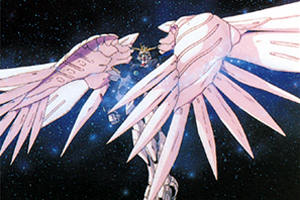 In total, Zero is equiped with four large wings: two movable front wings and two variable-geometry rear wings. In rest, the wings lay on its back. The wings can also be used to shield Zero during re-entry into Earth's atmosphere by brining the front wings in front of the gundam. Zero is able to glid for long periods of time on the wings. |