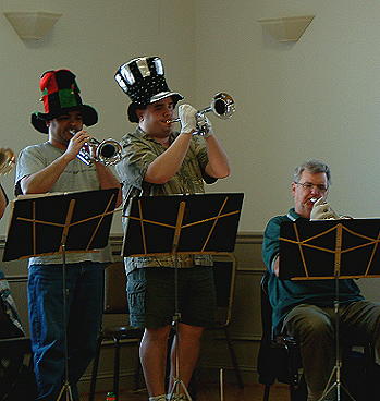 (the woman who wanted to whack me for calling the “CORPS” a, “BAND”), on the other side of the Krazy-Hat-Wearing horn-blowers. |