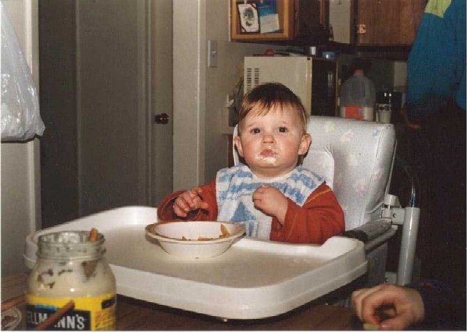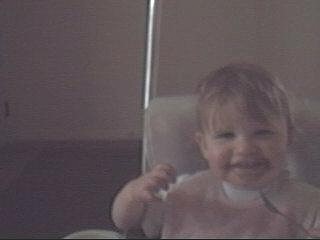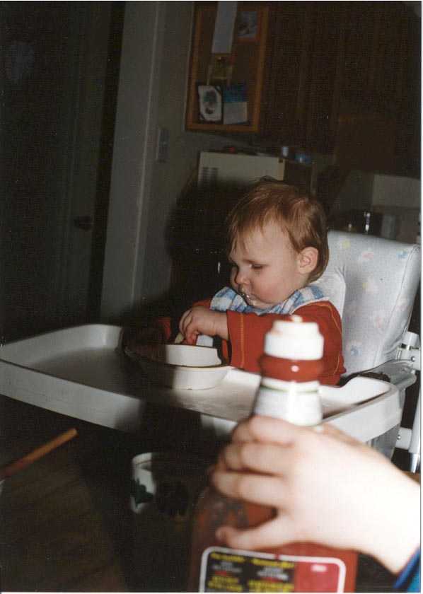 | Fenna met een appel in schijfjes. |