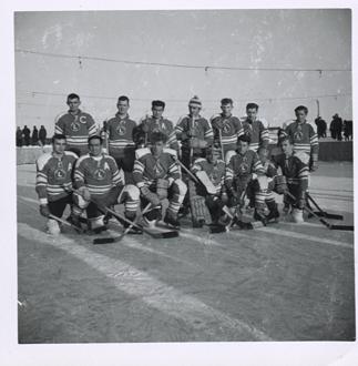 Senior Hockey in Bonavista became more organized in the 1950s and 1960s. The Bonavista Bear Cats was the premier team at the old outdoor rink on Station Road and provided the townspeople with many exciting games against opposing teams from Little Catalina, Melrose, East Point, Port Union, and elsewhere. The Bear Cats continued for awhile after the opening of the new Bonavista Stadium, but the team soon underwent changes and became known as the Bonavista Flyers. Later, as the years passed, the senior team was an all-star team from the area and became known as the Cabots. Lloyd Keats was the first coach of the Bonavista Bear Cats, and coached the team to a championship in 1962 - 63. Bonavista won four games against Glovertown at a tournament in Clarenville to win the trophy. The trophy was the first to be brought to Bonavista by a senior hockey team. A showcase of Bear Cats memorabilia has been prepared and is available for viewing at the Bonavista Stadium. Janette Carpenter (Catalina), daughter of Lloyd Keats, supplied the photos of the Bear Cats and the Flyers, and Fred Groves and Lloyd Little helped to identify the team members.