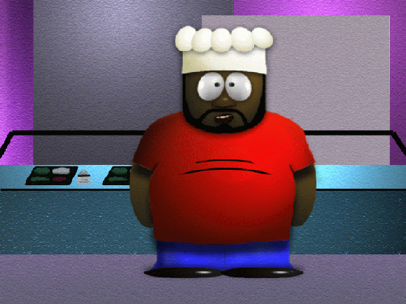 Here are the main characters of South Park (in order of apperance), Cartman, Kenny, Kyle, Stan, and Chef. To have an enlarged version just click on the desired picture.