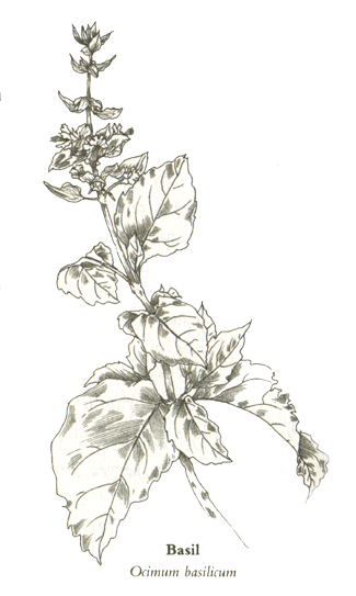 Basil is probably one of the most widely known kitchen herbs. A favorite in summer pestos, and tomato dishes for centuries, the origin of its name is debated. Some say it comes from the Greek basilikon, meaning "royal herb", others say it comes from the ferocious mythical beast the basilisk. It was a symbol of mourning for the Greeks and a token of love for the Romans. It was highly revered in India where it is considered sacred to the god Vishnu. Egyptians used basil in their embalming formulae. In folklore we find that Basil's stories are colorful.