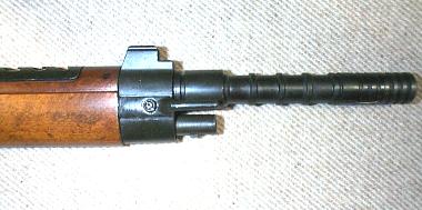 Close-up of the nosecap and stacking hook on the MAS-36/51 rifle,