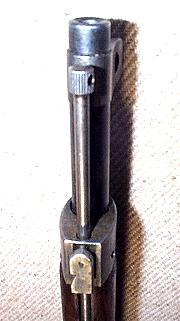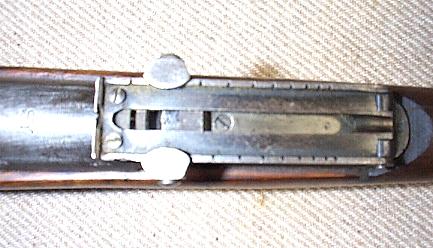 Close-up of the windage adjustable U notched plate added to the rear sight on some M28 rifles.