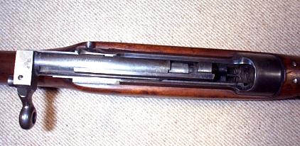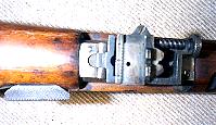 Close-up of the action, they lever near the sight was used to depress the magazine floorplate.