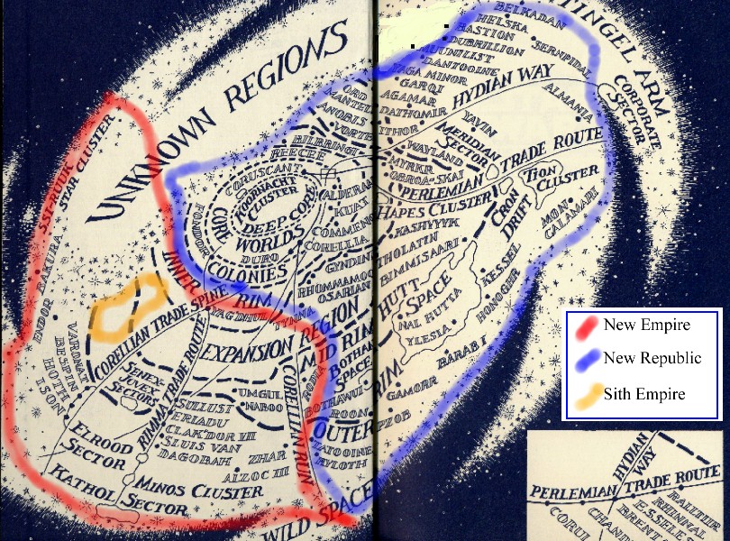 Notice: This map is found in Del-Rey's "The New Jedi Order" Star Wars novel series. Del-Rey is a division of Random House, Inc. (www.randomhouse.com/delrey) The map design by Daniel Wallace. Map by Chris Barbieri. And of course, it is definitely the intellectual property of Lucasfilm, Lucas Books, or Mr. George Lucas in some way shape or form. It is here only for personal use (entertainment and reference).