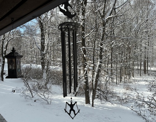 * On Sunday December 14th we got 11 inches of snow making it impossible to get off of the hill. Buffy cleaned off the car to be ready to ski tomorow. Today waw a day to enjoy the beauty of the snow out our window.