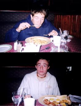 Before we left Hamilton, we got a bite to eat. Don't we look like a couple of slobs?