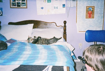 Here's our Datsun kitty. He was rescued by my brother from a car junkyard and we think we was born around Aug/Sept of 2002. He was living in an over turned truck bed and didn't seem that old when my brother brought him home. Now he LOVES the indoor kitty life and is a great source of entertainment and cuddling whenever either is needed. *Smile*