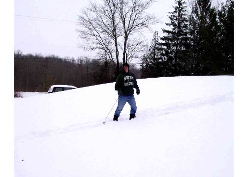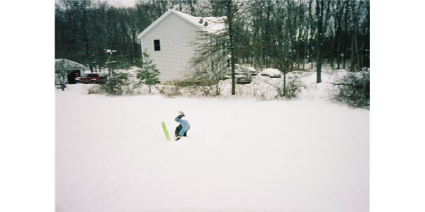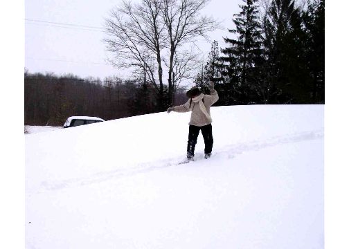 Even Mom took a spill one time (our house is in the background).