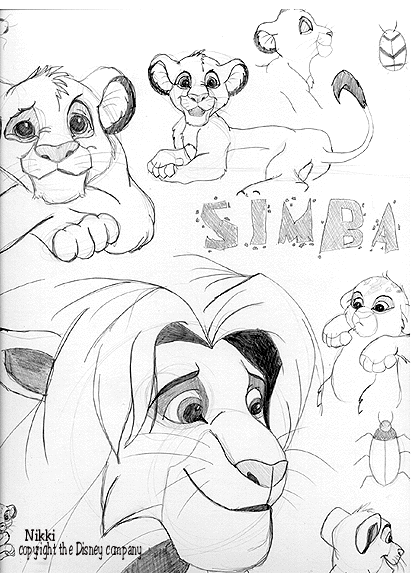 One of my favourite pastimes is drawing and painting. There's hardly a time when I don't have a paintbrush or pencil in my hand. My favourite things to draw are animals. I can sit there and watch them for hours on end. I would have liked to include them here but they are rather large files and would have taken forever to load (not to mention they are too big to fit in my scanner, Simba down bottom is partially cut off) I decided to put only Disney character sketches here to keep with the theme and to keep it simple. My ideal job would be to have a creative position within the Disney company and maybe someday I will.