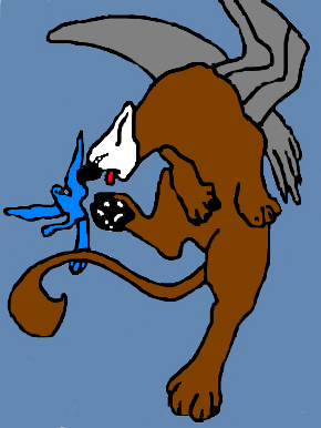 | Well, I wanted to do another pic to freshen up my puter coloring skills, & here it is. I finished this earlier today(6/30/00), & it has a griffin, which iz my old h.s.'s mascot. I like it..it looks cool :) |