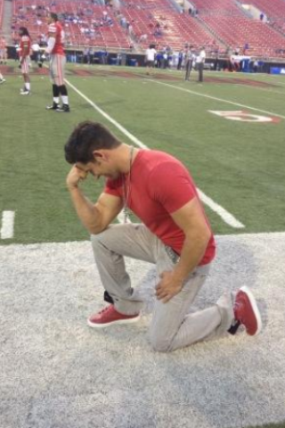 Tim Tebow? No! It's Jeff this evening doing his best Tebow pre-game pose @ The UNLV Rebels game.