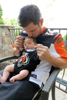 We all know Nick is a HUGE Bengals fan. Tide is having a contest on facebook called "show us your colors". Nick uploaded a pic of Camden and himself wearing their Bengals gear. " I uploaded the first picture of Camden and I wearing our Bengals gear for tides "Show Us Your Colors" campain. It's my proudest moment as an NFL fan to date!" - Nick Lachey.
