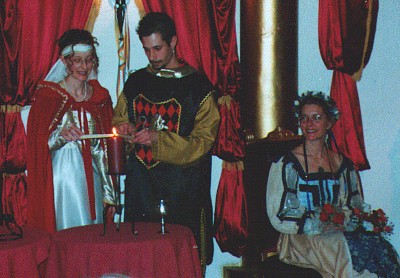 The CeremonyThe ceremony was everything we wanted it to be. It was full of romance, symbolism and poetry. Darla and I researched Renaissance weddings and created the ceremony that was most meaningful to us. We included a candlelighting ceremony, a winecup ceremony and our own vows, along with chosen readings read by friends and family members. It was truly special.