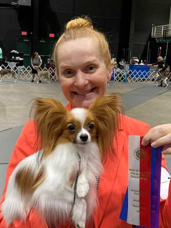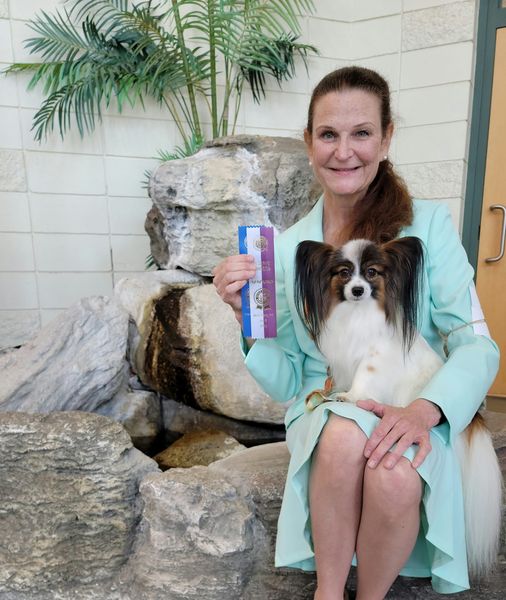 We are so proud of Hayden Braun's accomplishments with his first Papillon, Sherjak's Vintage Vivian At Hallmark (Pipi), NA, NAJ, OA, OAJ, SIN, SEN, SCN, TKN, TKI. Haden is training this lovely Peggy/Mateo daughter and competing in Junior Handling Conformation as well as doing all the training and exhibiting in Scent Work. What an amazing accomplishment for this young team!