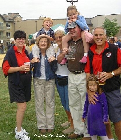 E-Business Management Consulting. He believed that his classmates would find it easier to stay in touch and communicate if they had access to the benefits that could be gained from a web site. In addition to his work in consulting John has been a freelance photographic journalist covering many sporting and historical events. He has used these talents to photograph VHS Class of 1959 reunion activities and post them on the web site. More of his photographic and journalistic events can by viewed by visiting two of his web sites - Golf Event Photos and the Vernon Advocate. He is also the author of 13 books on a wide variety of topics including a book commemorating the VHS Class of 1959 featuring photos and memories of the 40th, 45th and 50th class reunions which can be downloaded FREE. A list of his book can be viewed by clicking HERE. John is married to wife Buffy. The two share a love for outdoor sports, skiing, golf and their children and 5 grand children. L to R: Buffy, Denise with Reilly, Peg Whiting, Patrick with Meredith, John with Lillianna at the 2005 Oktoberfest.