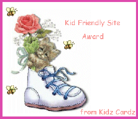 Are you interested in an award for your great site? Well you came to the right place. You must have a clean, safe site for children. Any age welcome. even if you are a kid at heart, who just enjoys making a safe, fun site for children to learn or have fun at. I ask just one favor. If you could please link the award back to my site so others that made a safe site for kidz can get an award too. Thanks :-). Here are the awards. Just select which one you like, then go to the form page. I will check out your site and if it meets the requirements I will send you the award. After you put the award on your site e-mail me and I will add you to the winners page. Click HERE for the form to fill out.