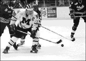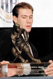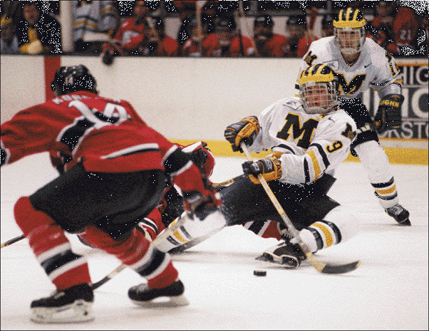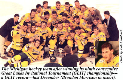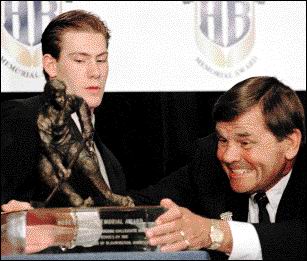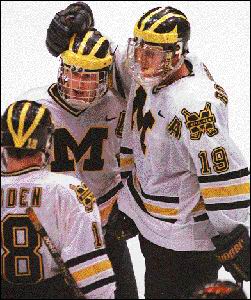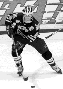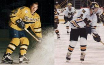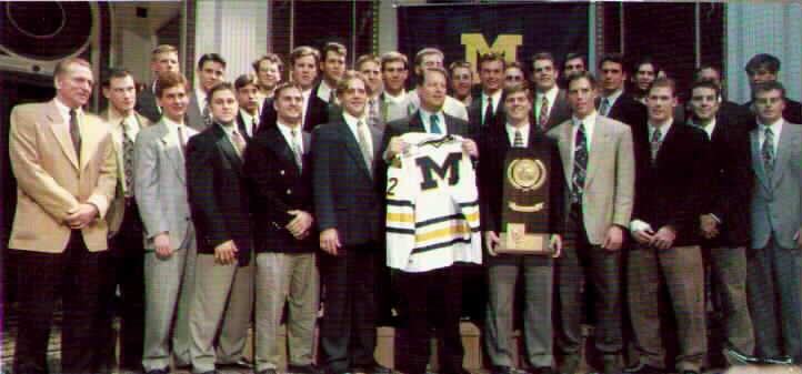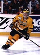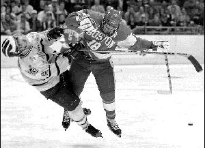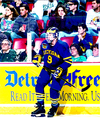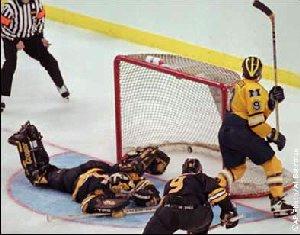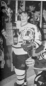 Hoisting his stick up after he scores game-winning goal to win 95-96 championship