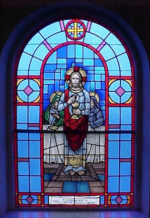 It depicts Jesus in a Last Supper-like setting. Jesus is