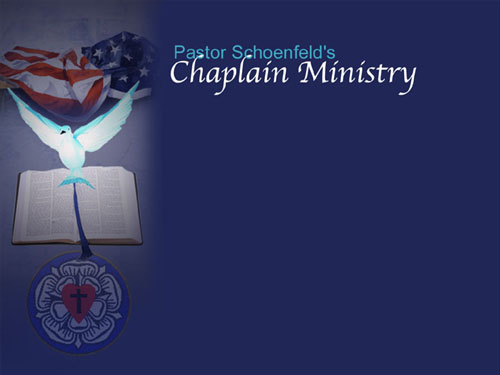All goes well with the ministry here. It is a very long story and I have a lot to tell, but there is little time. Basically, the days are 14 hours long and the work is intensive but very rewarding and meaningful. As a missionary to the soldiers the Lord is allowing me greater and greater access to their lives. As a minister to the caregivers (other ministry teams) I have been able to interact and intervene in many cases where help was very much needed. As a soldier I have been able to model the behavior, values, attitudes and demeanor of a a Christian person and officer. I do miss the congregation and I especially miss those dear older saints because they mean so much to me as family. I also miss the children and watching them grow and mature as youngsters. I am not lonely because of the tremendous support I have from the army and fellow soldiers. - Pastor Schoenfeld