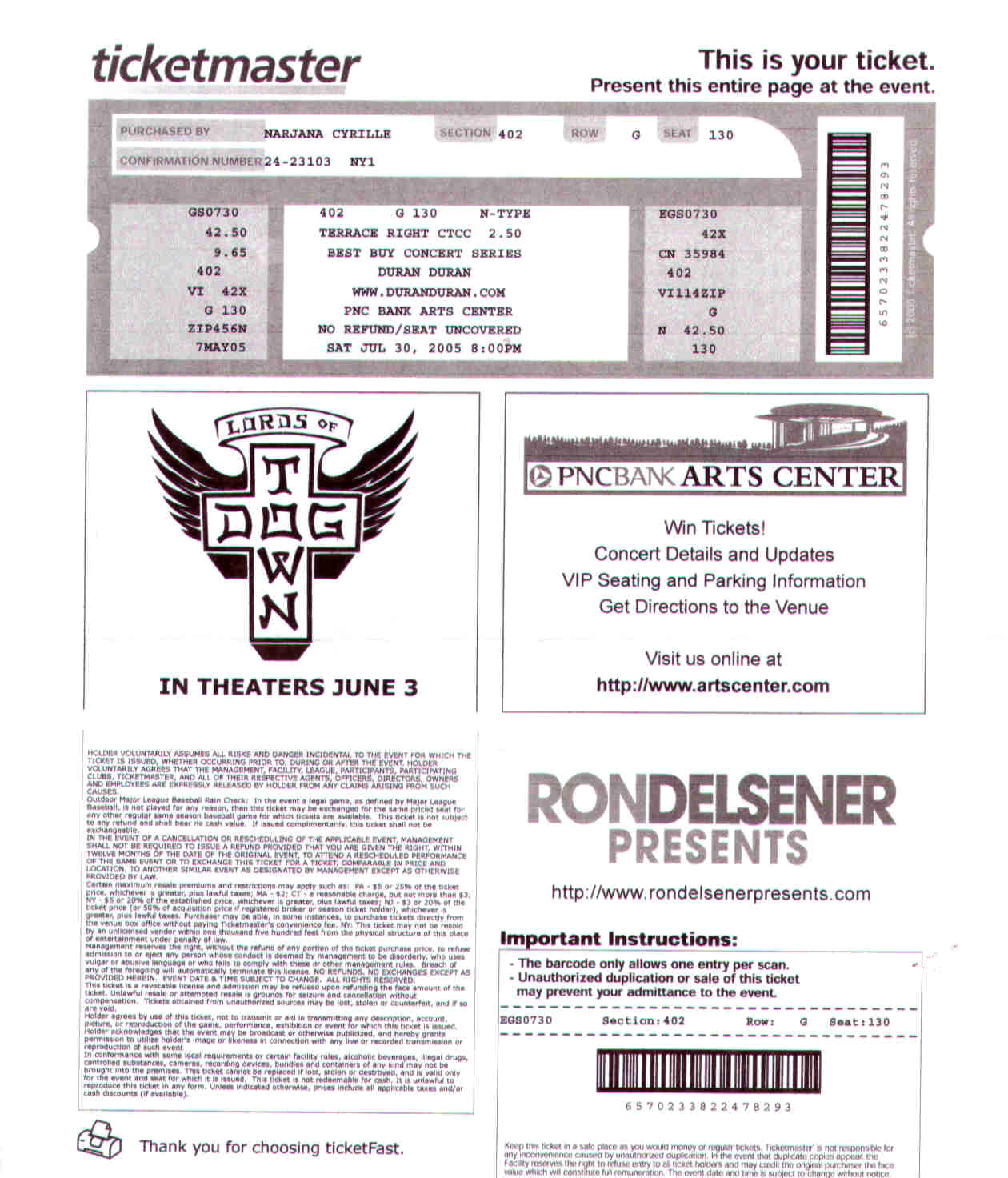 There were so many highlights to this show that I can't possibly name them all. Hearing "SOUND OF THUNDER" and "STILL BREATHING" live for the time was a definite plus, and I loved how they did "NOTORIOUS/I WANNA TAKE YOU HIGHER". I was curious as to how that was going to sound, and it was awesome! I, actually, like that version better than the NOTORIOUS/FAMILY version. Simon forgot to introduce Andy during the introductions in "GIRLS ON FILM", but remembered at the last minute after some reminders....LOL!
