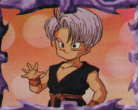 Okay...this page is about the cute yet demonic Chibi Trunks. The first time we see this form of Trunks is the middle of the Cell Saga. Bluma is often shown holding young Trunks. There's this even one adorable incident where Bluma has baby Trunks in her arms as she closely and i mean closely observes Future Trunks. She moves closer and closer to his face when all of a sudden baby Trunks grabs a hold of Trunks' hair and starts to pull. By the expression on his face, it looks like it hurt.