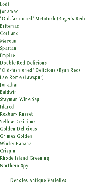 acklebarney Farm is home to over 350 apple trees, some of which are well over one hundred years old. These trees supply us with 23 different varieties which begin to ripen around Labor Day and continue through the end of October. Once picked, our apples are placed in cold storage, where they remain until individual varieties are exhausted.
