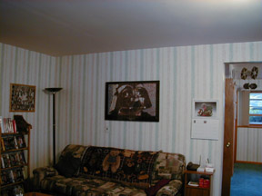 The Darth Vader mosaic sets the tone for this corner of the room.